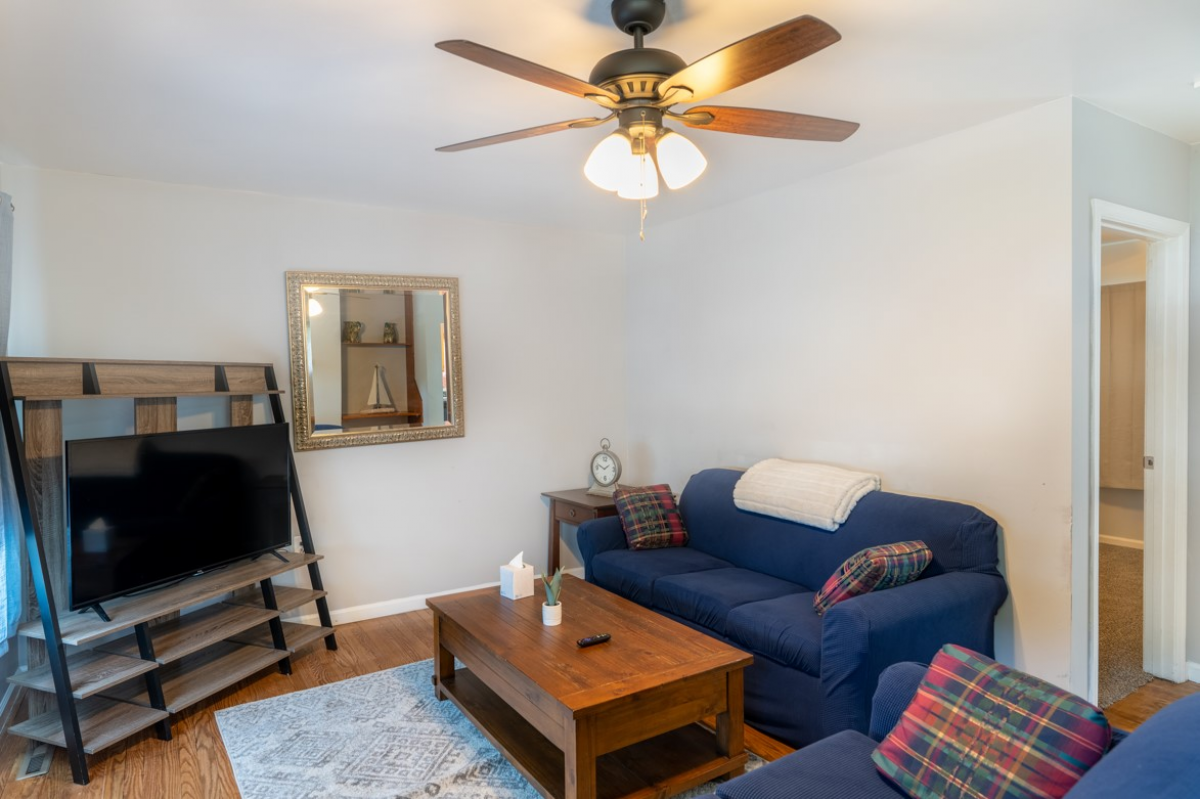 The well-appointed kitchen is ready and waiting for a family gathering filled with cooking, laughter, and the creation of memories. The kitchen opens into a dining area that can seat 4. With its large bay windows, the living room provides a great space to enjoy natural light and quality time watching your favorite show with friends and family.