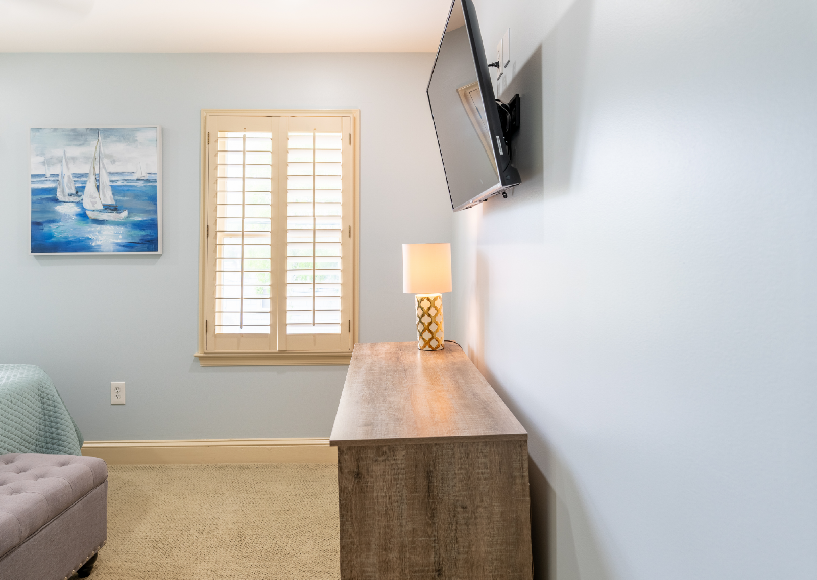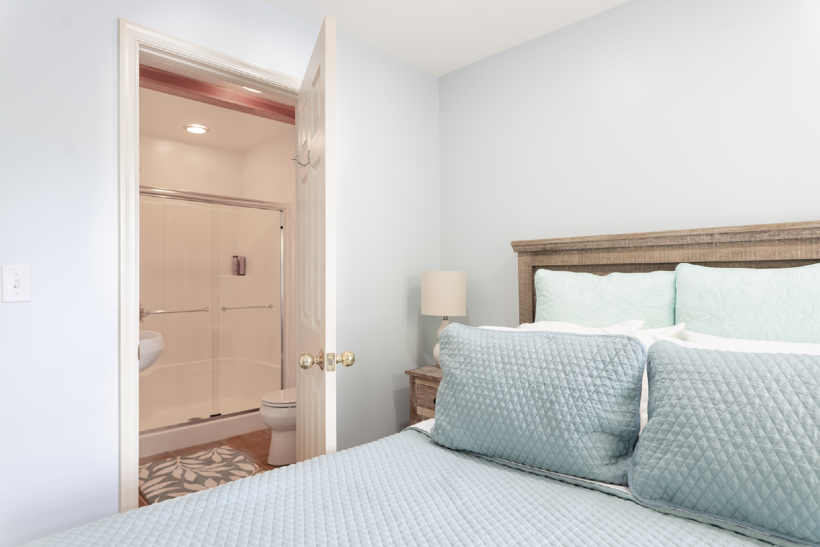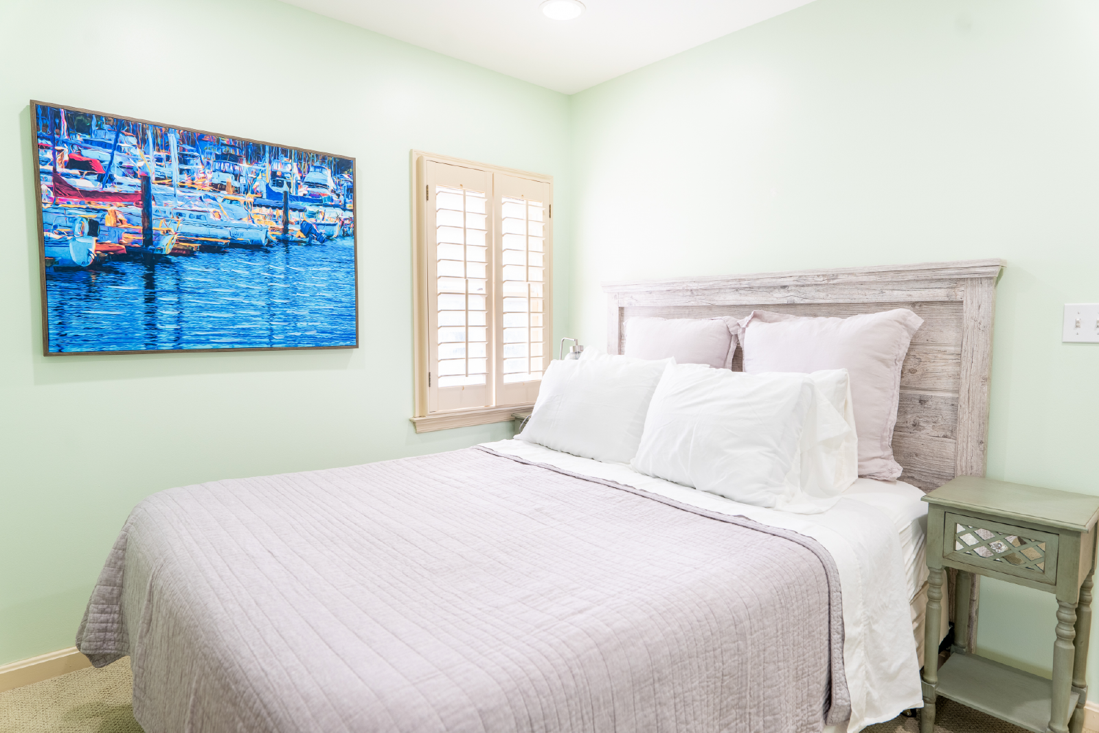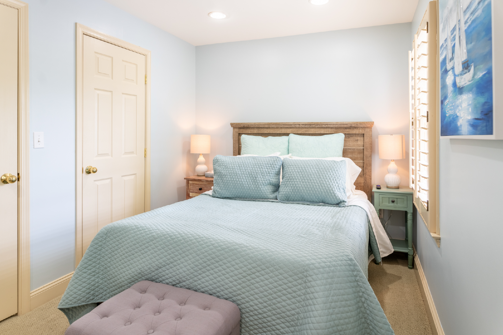 Retreat to the tranquil bedrooms, each boasting plush beds and tasteful decor, ensuring a restful night's sleep. The townhome features 1 half bathroom on the main level and two full size bathrooms, each featuring contemporary fixtures and complimentary toiletries.